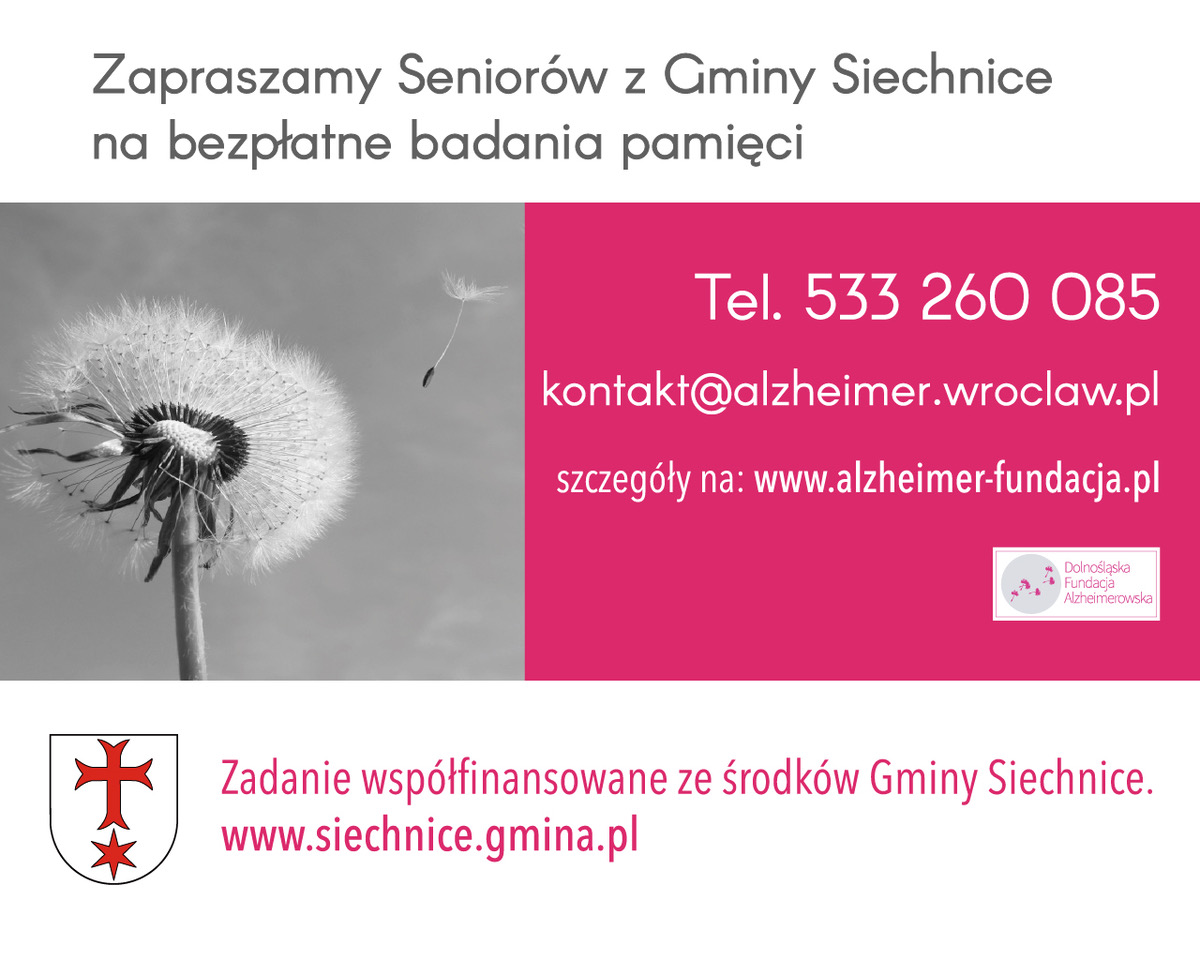 Na konsultacje ze specjalistami oprócz osób z problemami z pamięcią mogą zapisać się również opiekunowie osób z demencją. Otrzymają one także bezpłatne poradniki z radami jak radzić sobie w opiece nad chorym z otępieniem. Badania współfinansuje Gmina Siechnice.