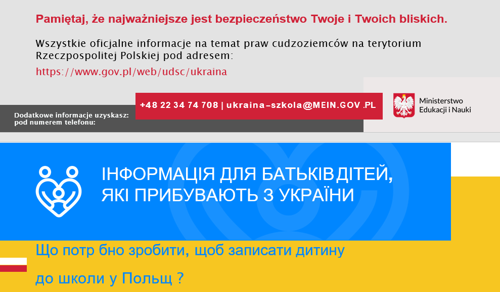Informacja dla rodziców i dzieci przybywających z Ukrainy