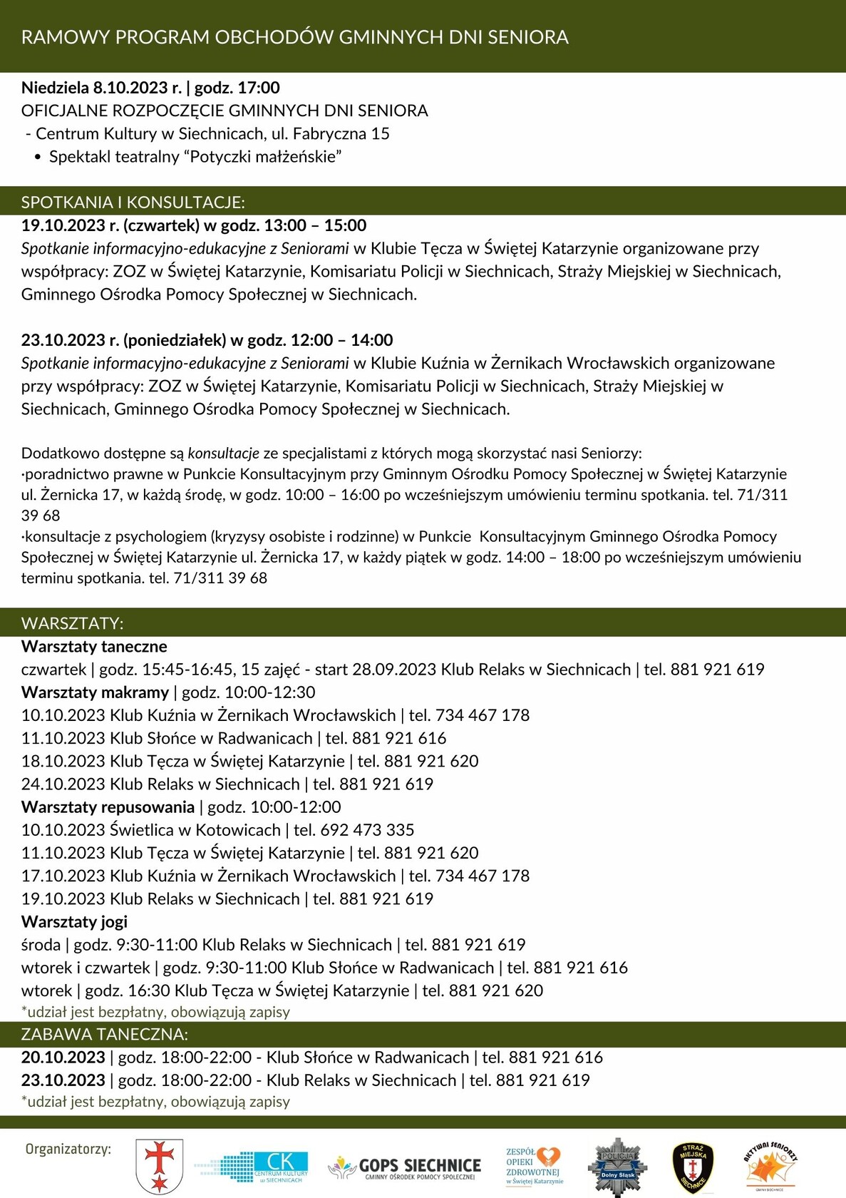 Gminny Ośrodek Pomocy Społecznej wraz z Centrum Kultury w Siechnicach zaprasza wszystkich Seniorów na Gminne Dni Seniora 2023 r.
