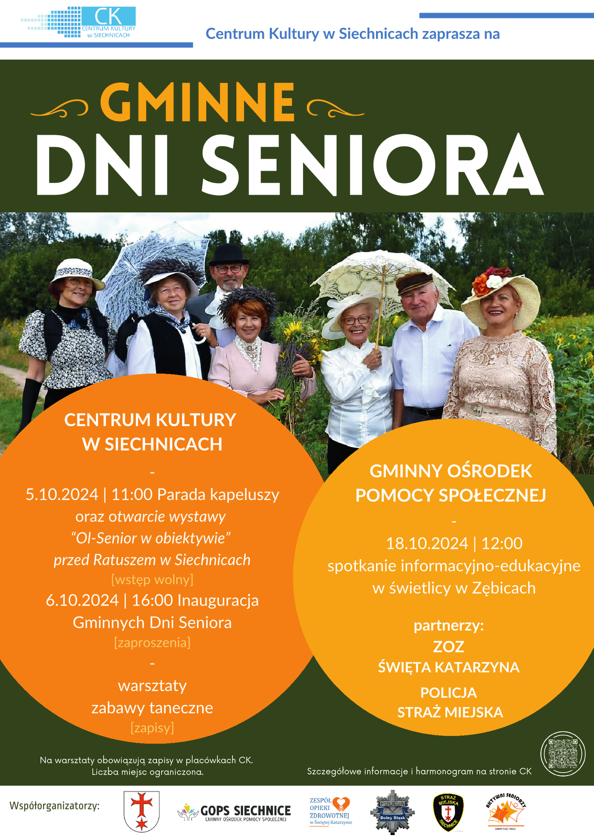 Gminny Ośrodek Pomocy Społecznej wraz z Centrum Kultury w Siechnicach zaprasza wszystkich Seniorów na Gminne Dni Seniora 2024 r.
