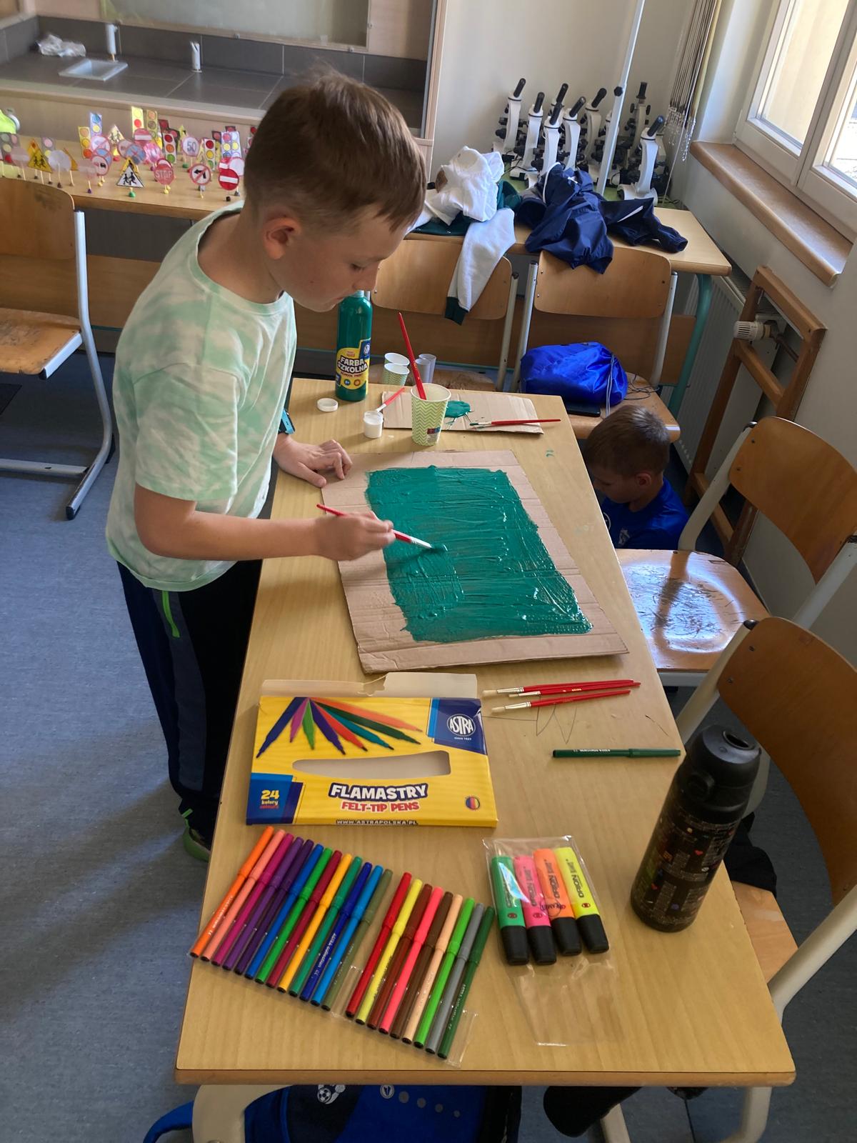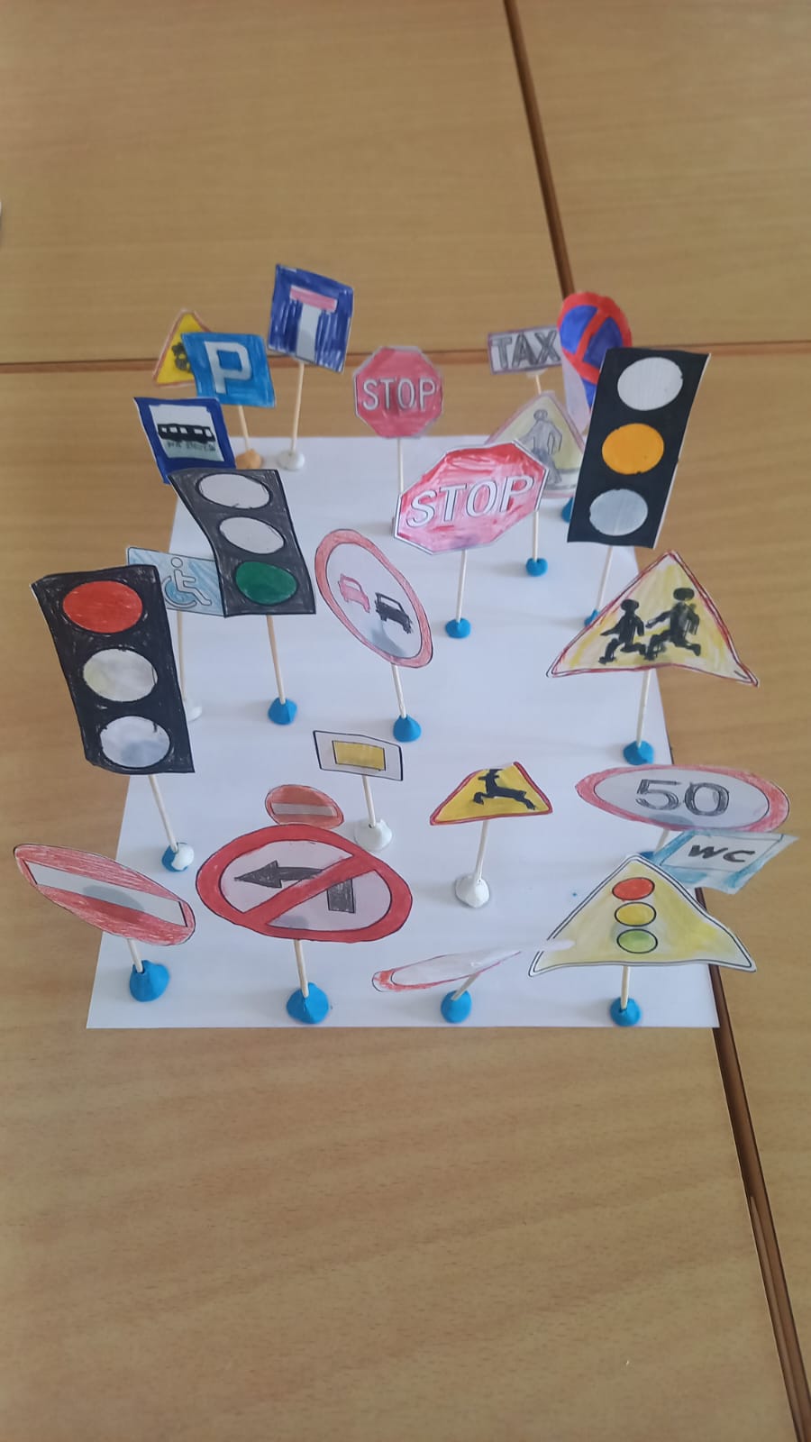 Prace plastyczne „Znaki drogowe": Tworzenie znaków drogowych pomogło dzieciom w przyswojeniu ważnych zasad bezpieczeństwa na drodze.