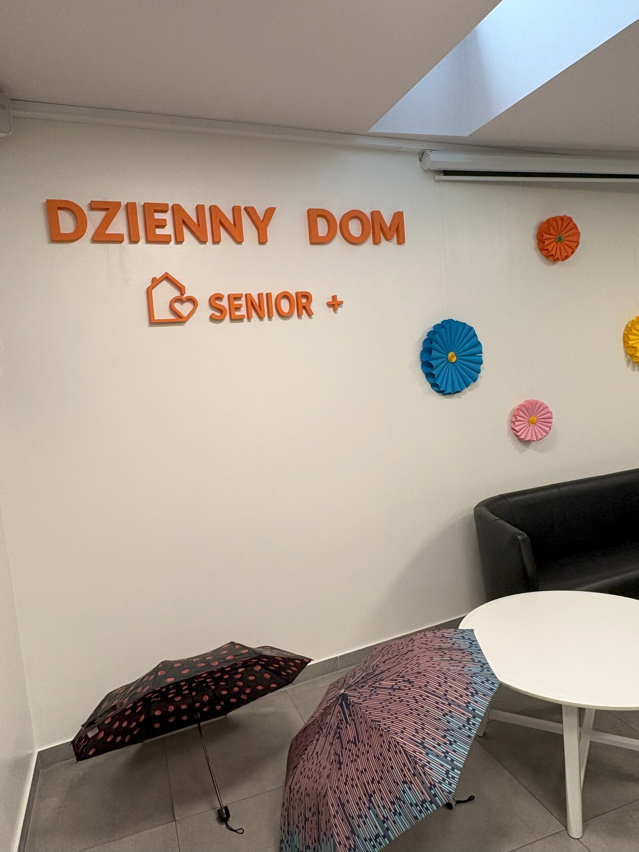 Kolejnym punktem programu był Dzienny Dom Senior+. Tutaj mogliśmy zobaczyć działania na rzecz osób starszych. Miejsce urocze, miejsce pięknych prac seniorów zdobiących ściany, ale wyposażone też w sale do usprawnienia fizjoterapeutycznego, gier, zabaw czy śpiewu, o czym mogliśmy posłuchać od samych uczestników. Pomysły jakie są tam realizowane to zasługa kadry oraz wolontariuszy.