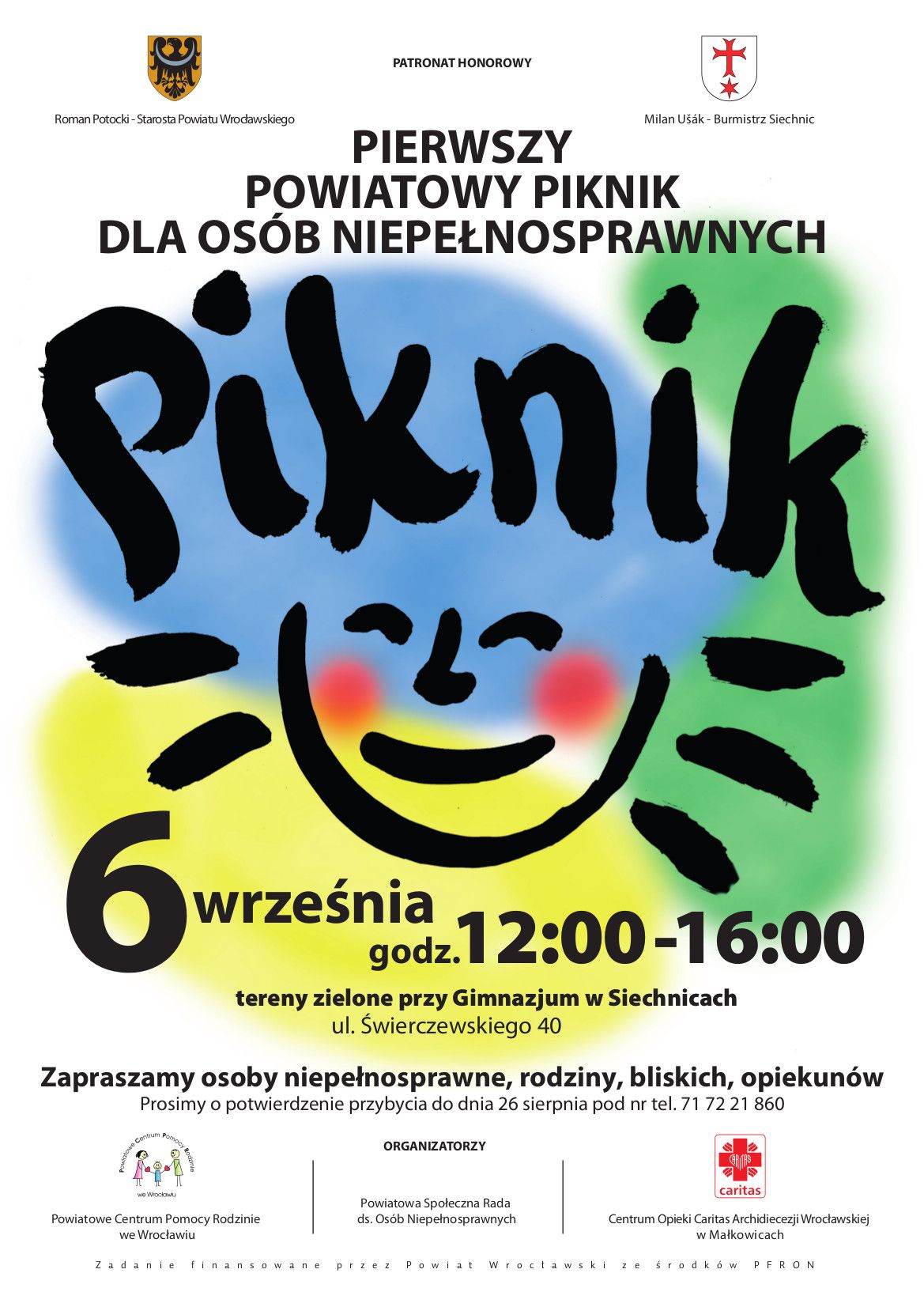 W dniu 6 września 2014r. na terenach zielonych Gimnazjum w Siechnicach odbył się I Powiatowy Piknik dla Osób Niepełnosprawnych. Organizatorami Pikniku było Powiatowe Centrum Pomocy Rodzinie we Wrocławiu wraz z Powiatową Społeczną Radą ds. Osób Niepełnosprawnych.