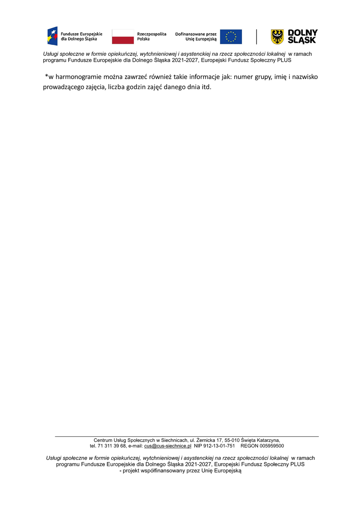 HARMONOGRAM REALIZACJI WSPARCIA W PROJEKCIE - WRZESIEŃ 2025