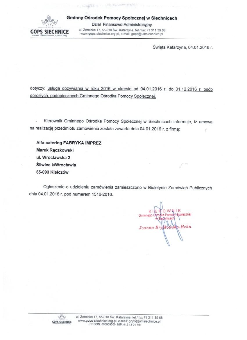 Zapraszamy do udziału w postępowaniu, niezbędne dokumenty znajdują się w ramce. Do pobrania Ogłoszenie o zamówieniu SIWZ wraz z załącznikami Załączniki 1-4 do edycji Ogłoszenie o wyniku postępowania Ogłoszenie o udzieleniu zamówienia Informacja o zawarciu umowy